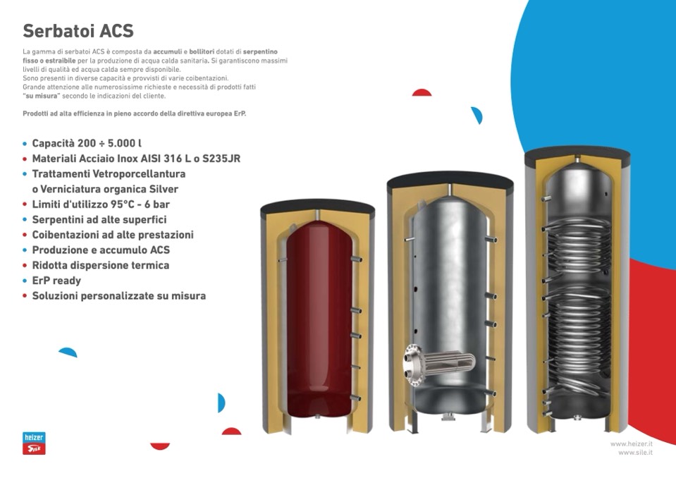 La gamma di serbatoi ACS è composta da accumuli e bollitori dotati di serpentino