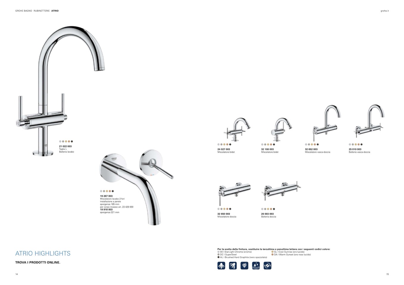 Per la scelta della finitura, sostituire la terzultima e penultima lettera con i seguenti codici colore: