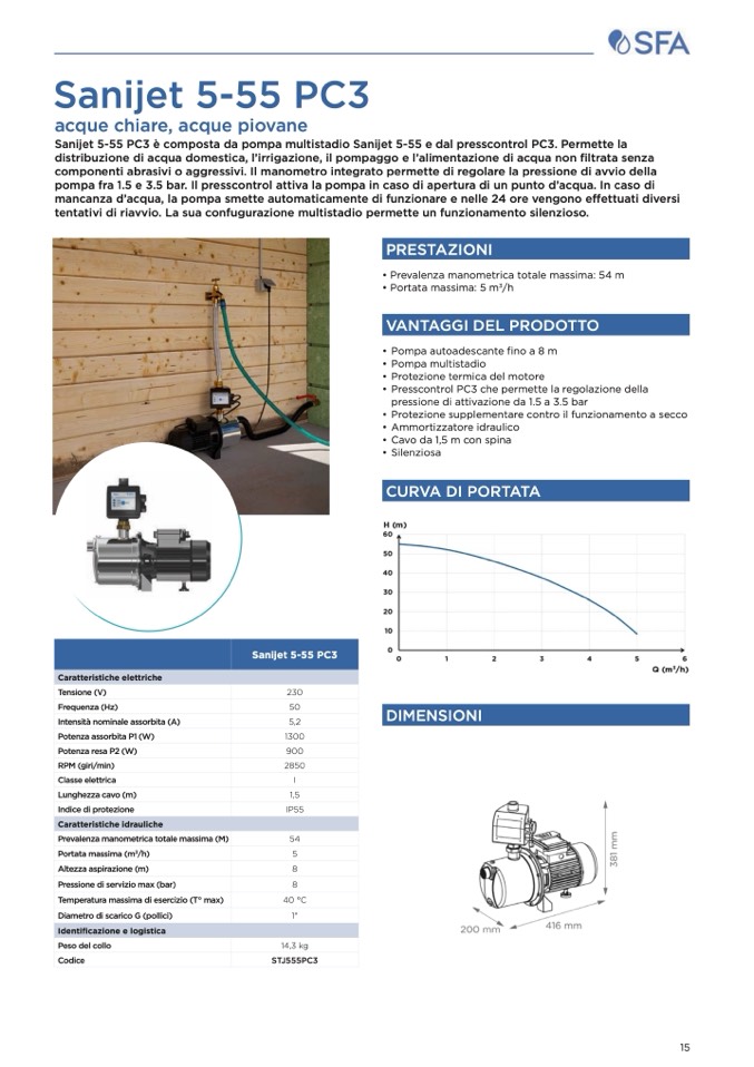 • Prevalenza manometrica totale massima: 54 m