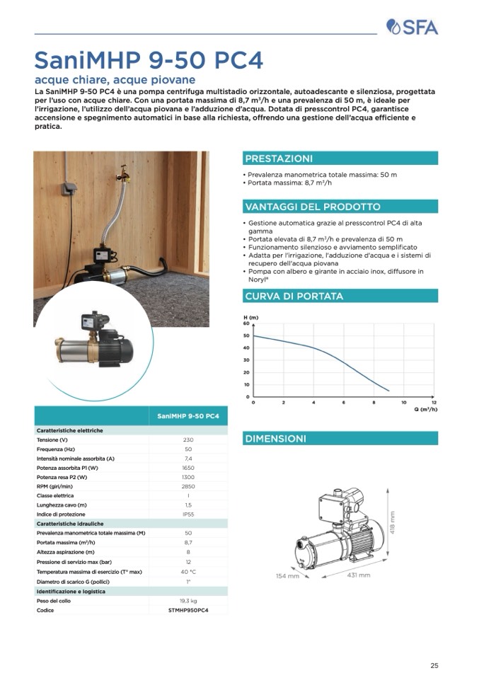 l’irrigazione, l’utilizzo dell’acqua piovana e l’adduzione d’acqua. Dotata di presscontrol PC4, garantisce
