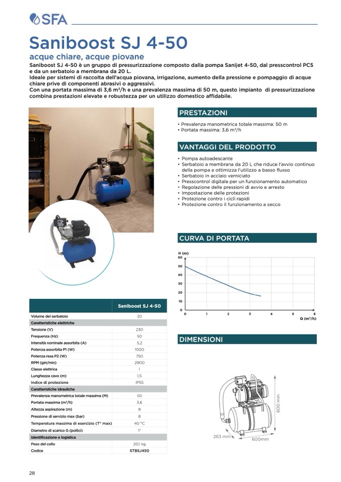 /h e una prevalenza massima di 50 m, questo impianto di pressurizzazione