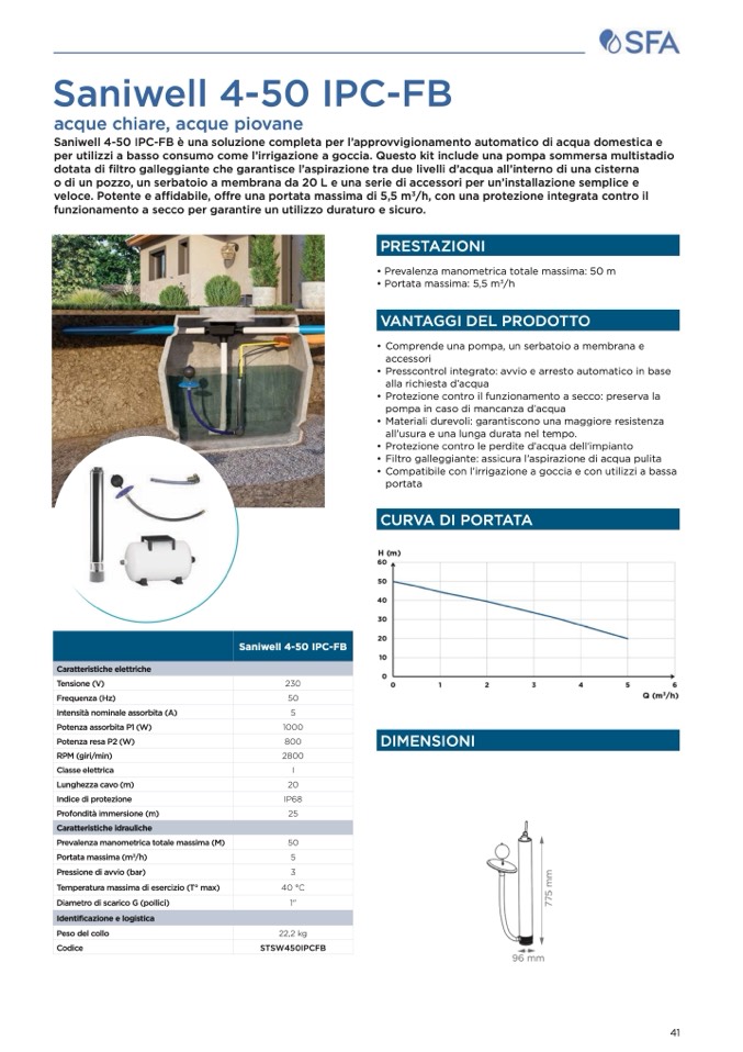 per utilizzi a basso consumo come l’irrigazione a goccia. Questo kit include una pompa sommersa multistadio