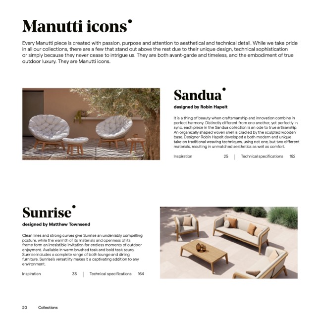 Every Manutti piece is created with passion, purpose and attention to aesthetical and technical detail. While we take pride