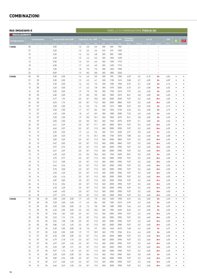 TABELLE DI COMBINAZIONE (TAGLIA 26