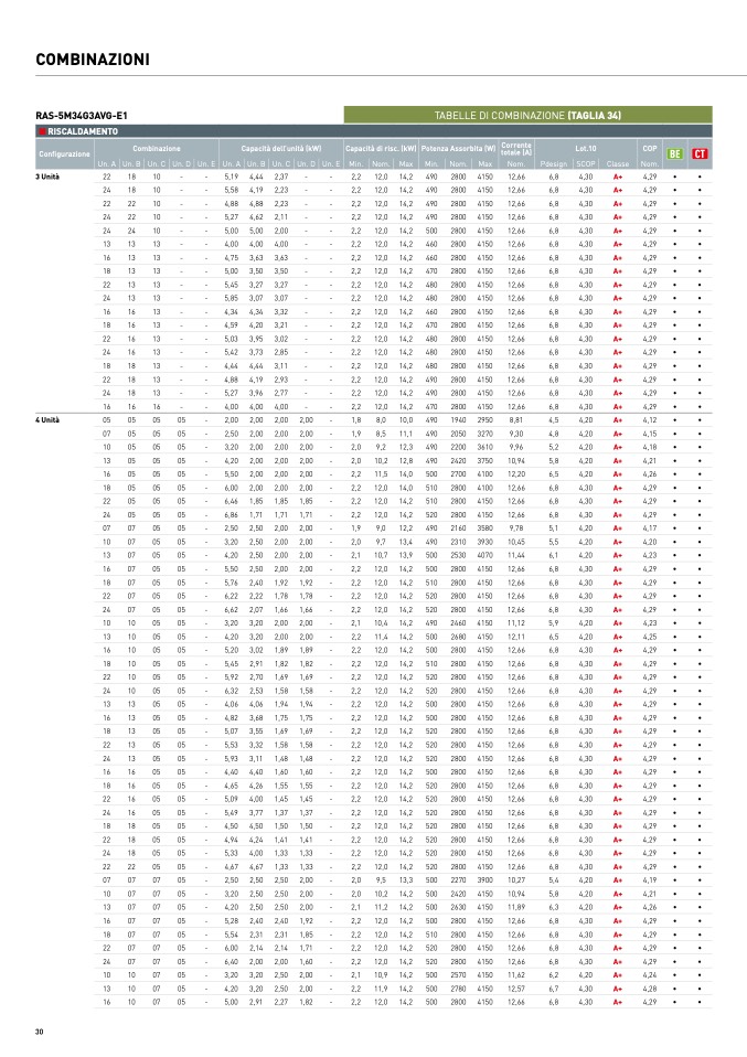 TABELLE DI COMBINAZIONE (TAGLIA 34)