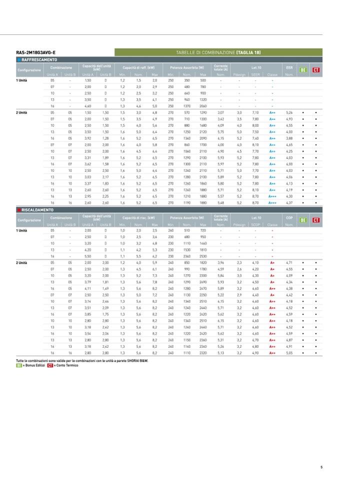 TABELLE DI COMBINAZIONE (TAGLIA 18)