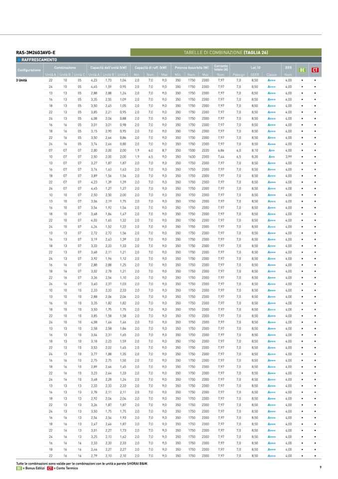 Tutte le combinazioni sono valide per le combinazioni con le unità a parete SHORAI B&W.