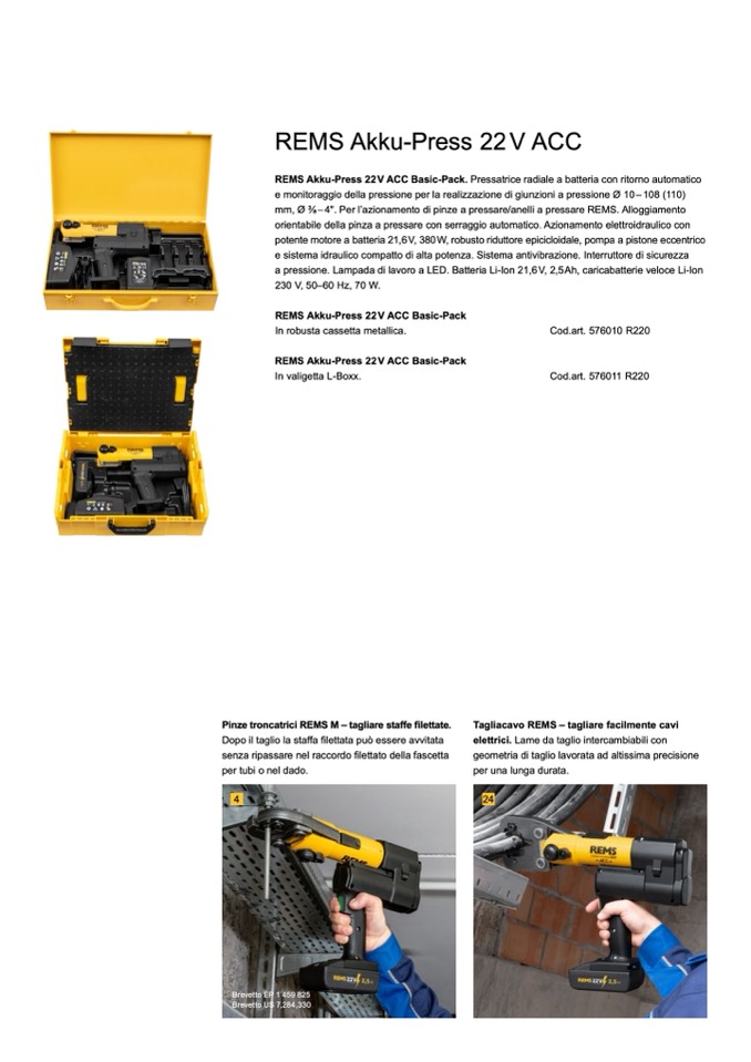 REMS Akku-Press 22 V ACC Basic-Pack. Pressatrice radiale a batteria con ritorno automatico