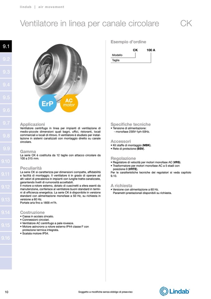 ni di efficienza energetica. La serie CK è disponibile in versione