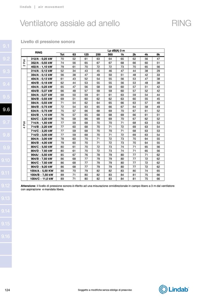 Attenzione: il livello di pressione sonora è riferito ad una misurazione onnidirezionale in campo libero a 3 m dal ventilatore