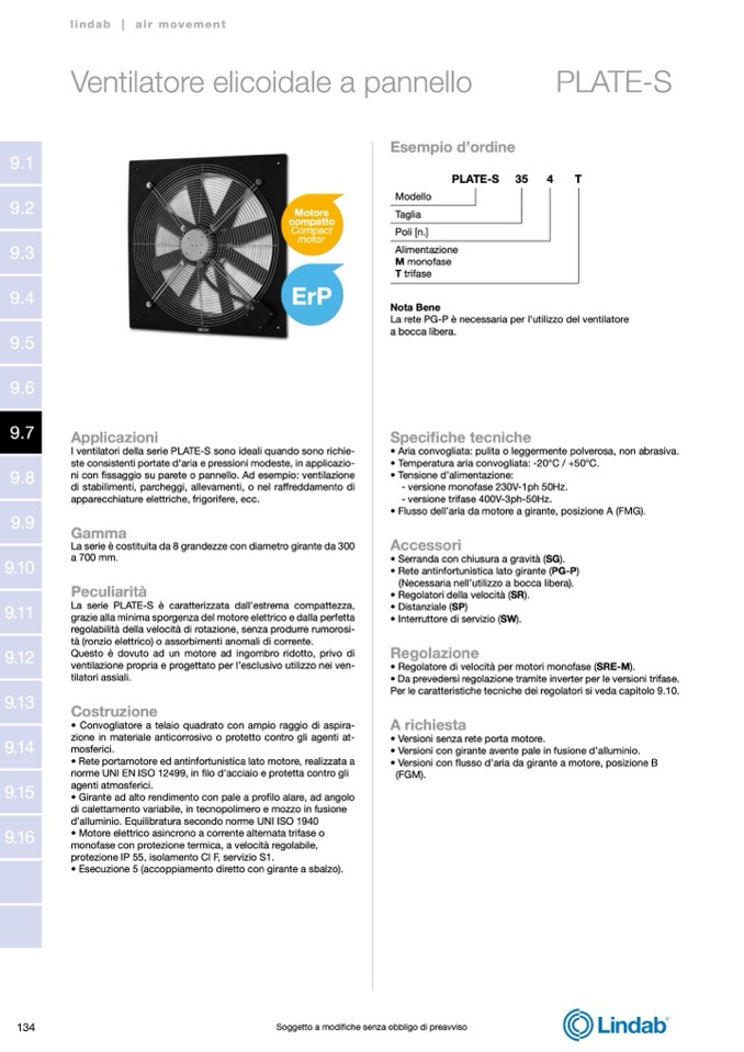 I ventilatori della serie PLATE-S sono ideali quando sono richie-