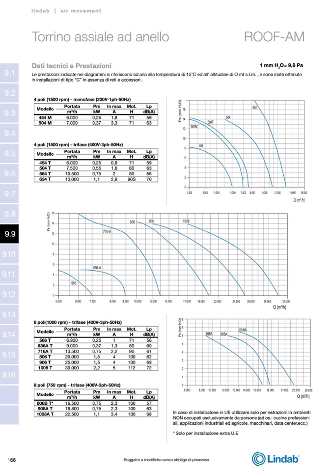 Le prestazioni indicate nei diagrammi si riferiscono ad aria alla temperatura di 15°C ed all’ altitudine di O mt s.l.m. , e sono state ottenute