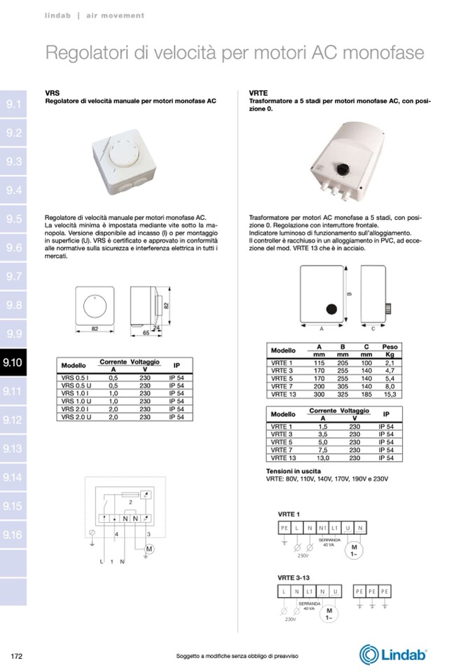 VRTE: 80V, 110V, 140V, 170V, 190V e 230V