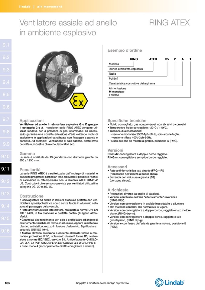 II categoria 2 o 3. I ventilatori serie RING ATEX vengono uti-
