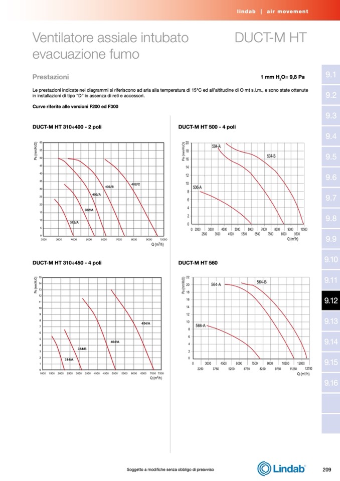 Le prestazioni indicate nei diagrammi si riferiscono ad aria alla temperatura di 15°C ed all’altitudine di O mt s.l.m., e sono state ottenute