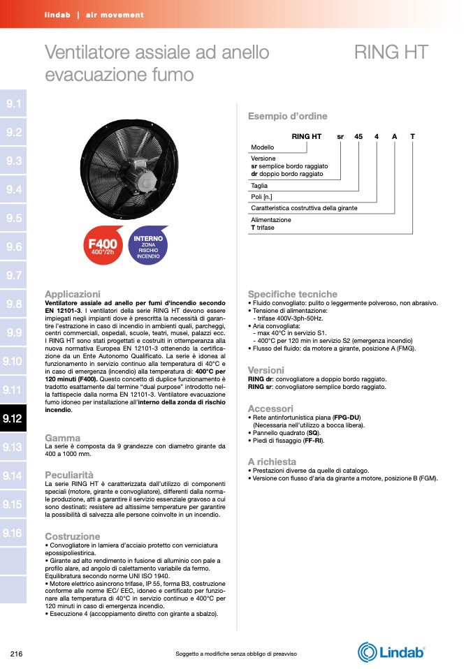EN 12101-3. I ventilatori della serie RING HT devono essere