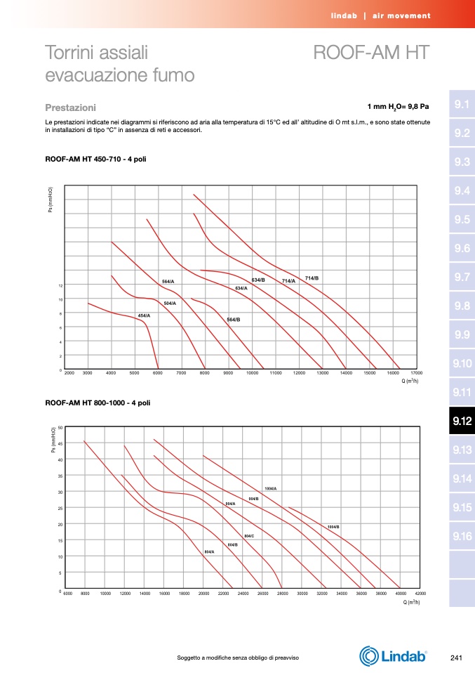 Le prestazioni indicate nei diagrammi si riferiscono ad aria alla temperatura di 15°C ed all’ altitudine di O mt s.l.m., e sono state ottenute