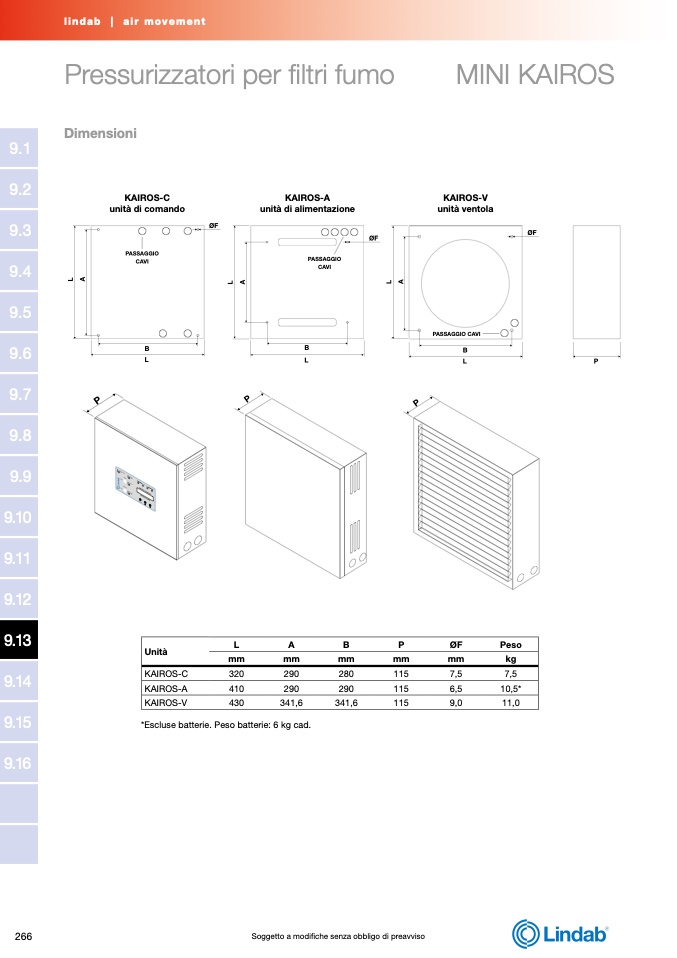 *Escluse batterie. Peso batterie: 6 kg cad.