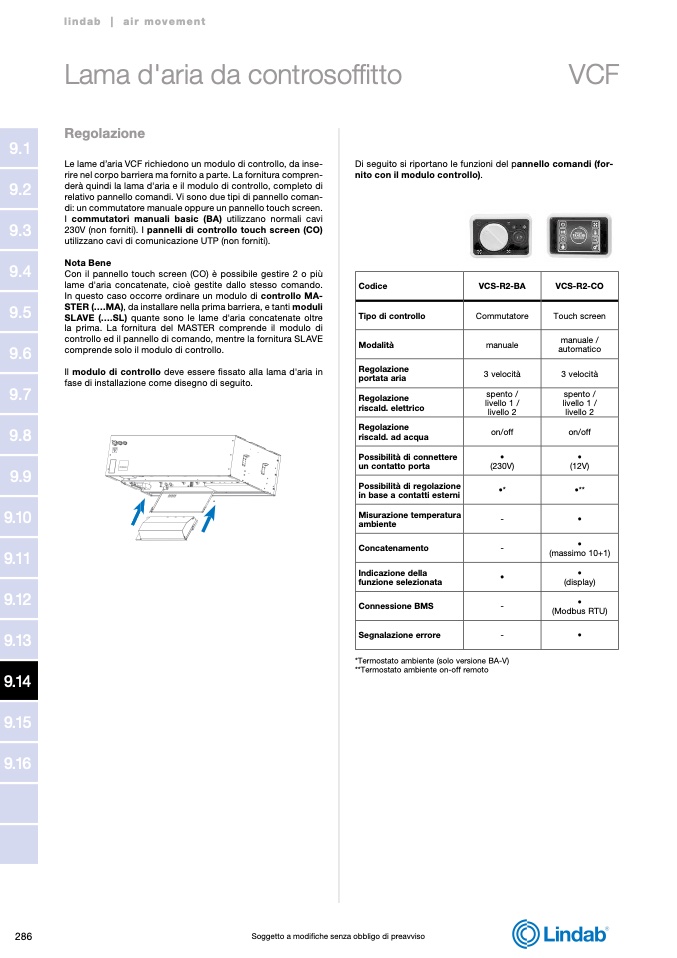 Le lame d’aria VCF richiedono un modulo di controllo, da inse-