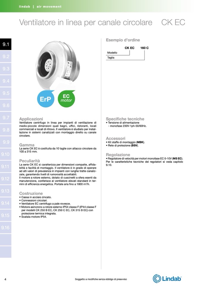 mini di efficienza energetica. Portate aria fino a 1800 m