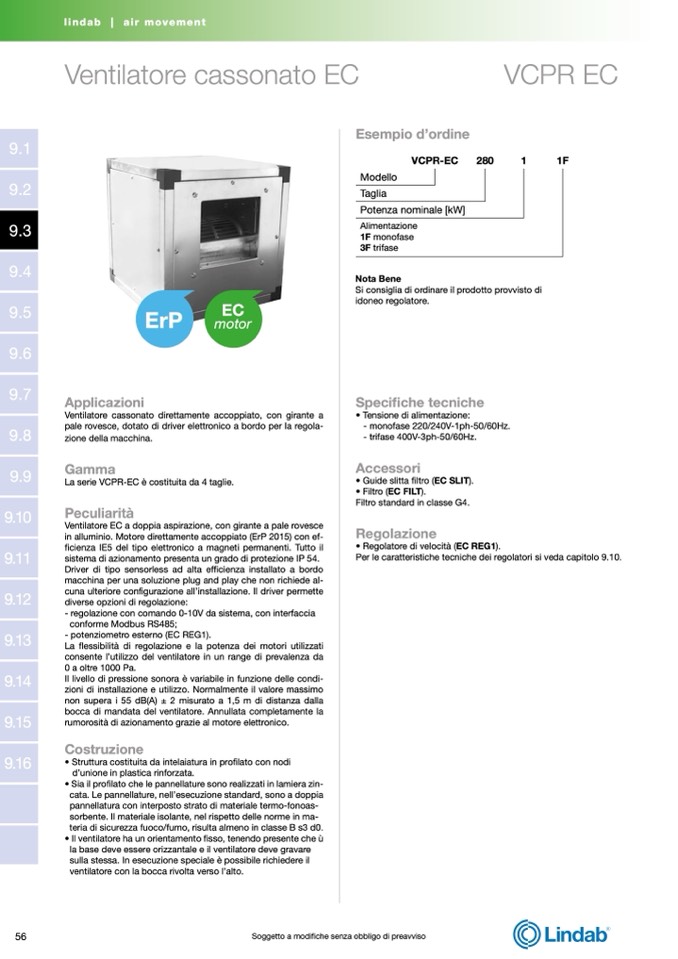 in alluminio. Motore direttamente accoppiato (ErP 2015) con ef-