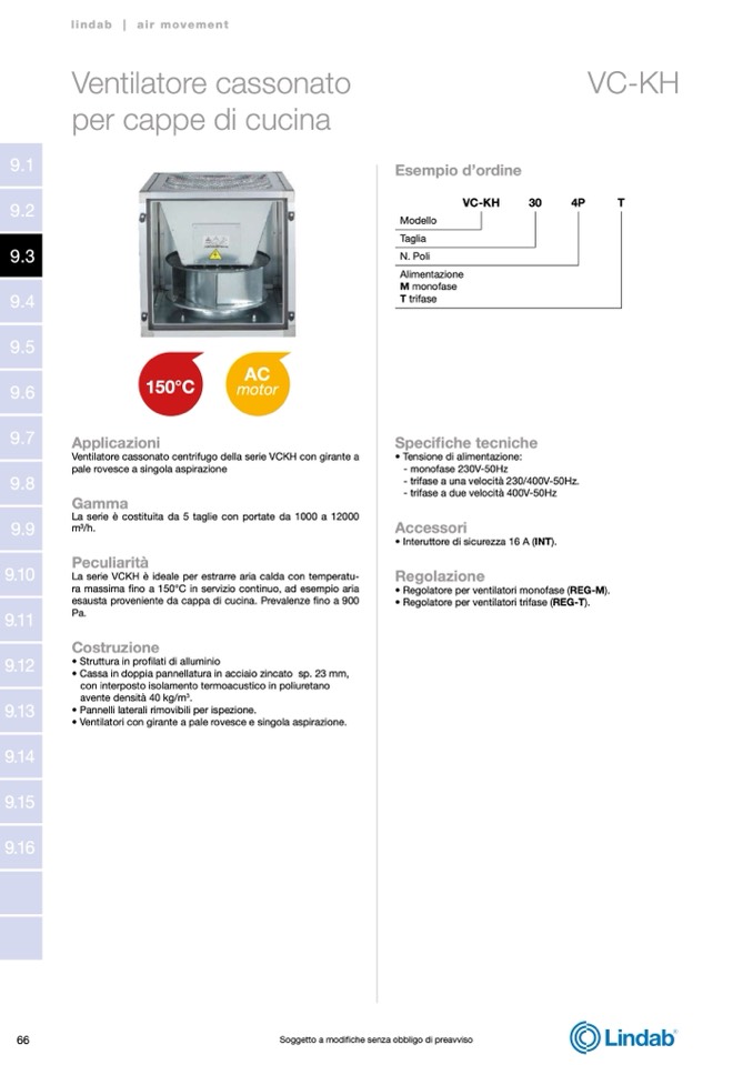 La serie VCKH è ideale per estrarre aria calda con temperatu-