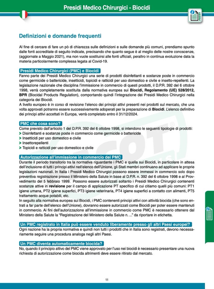 BPR (Biocidal Products Regulation), comportando quindi l’integrazione dei Presidi Medico Chirurgici nella
