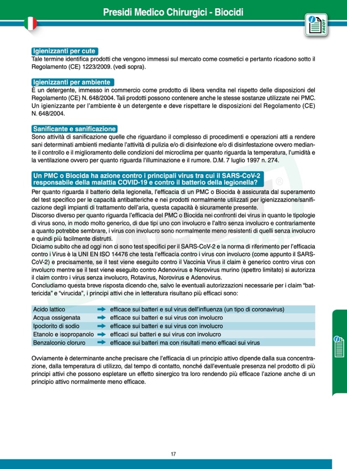 tericida” e “virucida”, i principi attivi che in letteratura risultano più efficaci sono: