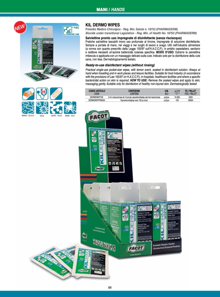 e laddove necessiti un’azione battericida cutanea specifica. MODO D’USO: Estrarre la salviettina