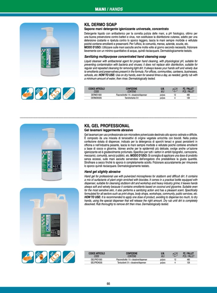 poiché contiene emollienti e preservanti. Per l’ufficio, le comunità, mense, aziende, scuole, etc.