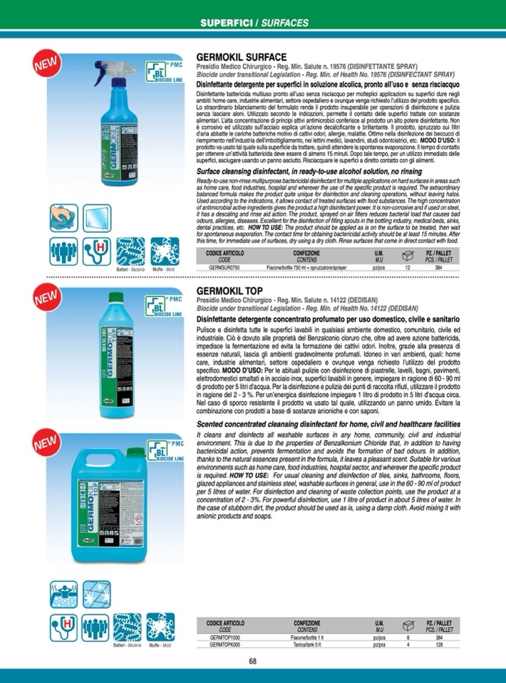 balanced formula makes the product quite unique for disinfection and cleaning operations, without leaving halos.