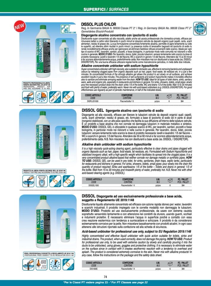 and flush with plenty of water, preferably warm. Never mix with acid-based unblockers (e.g. DISSOL-DISGRETOR). For good