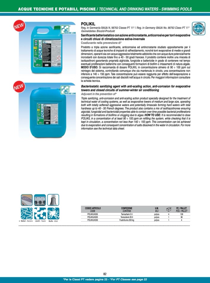 MODO D’USO: Si raccomanda di dosare POLIKIL in concentrazione almeno di 90 ÷ 100 ppm sul