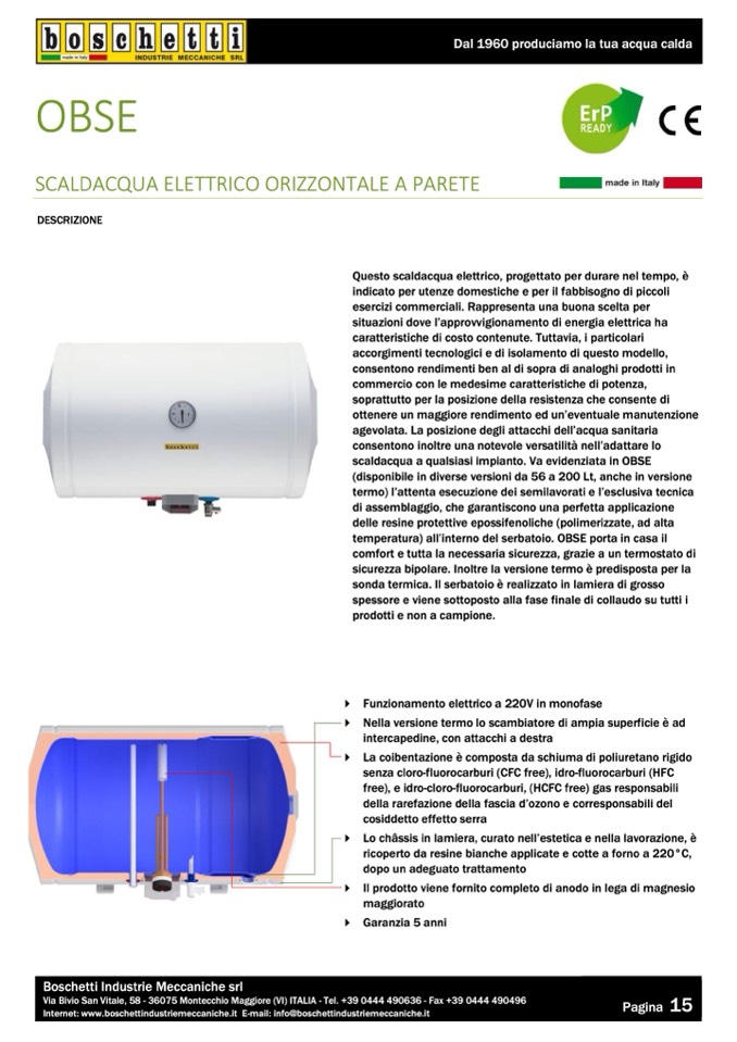 scaldacqua a qualsiasi impianto. Va evidenziata in OBSE
