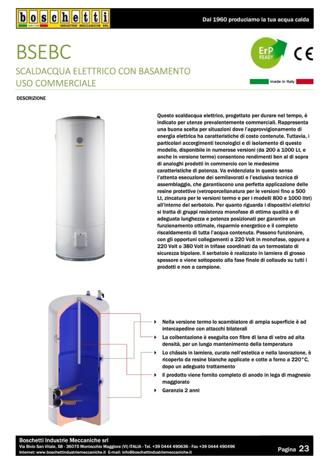 modello, disponibile in numerose versioni (da 200 a 1000 Lt, e