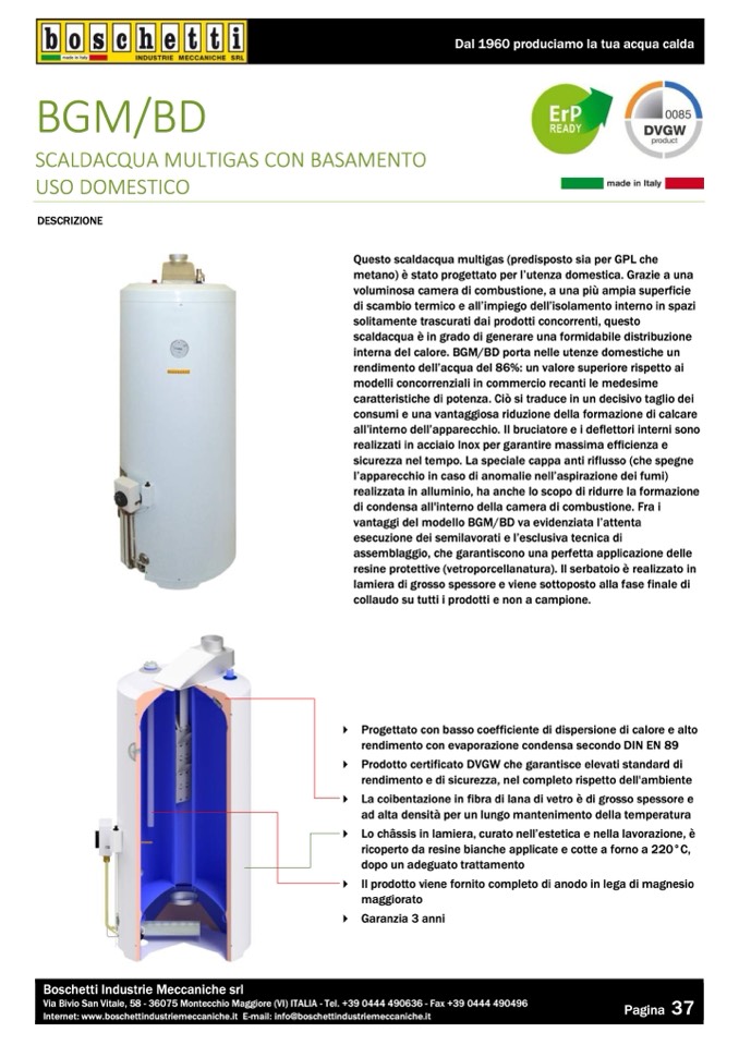 interna del calore. BGM/BD porta nelle utenze domestiche un