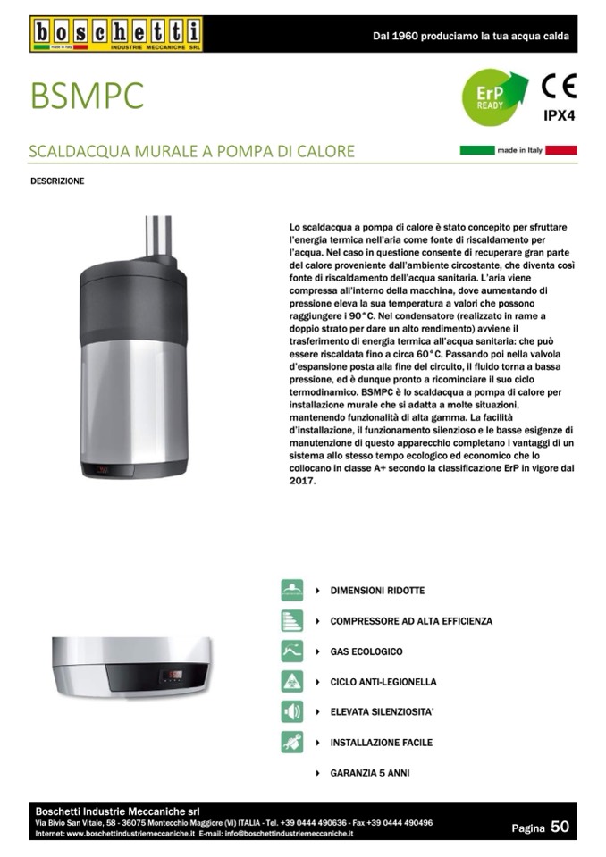 termodinamico. BSMPC è lo scaldacqua a pompa di calore per