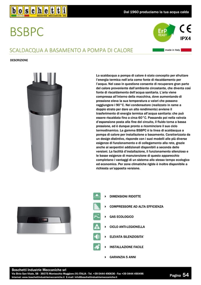 termodinamico. La gamma BSBPC è la linea di scaldacqua a