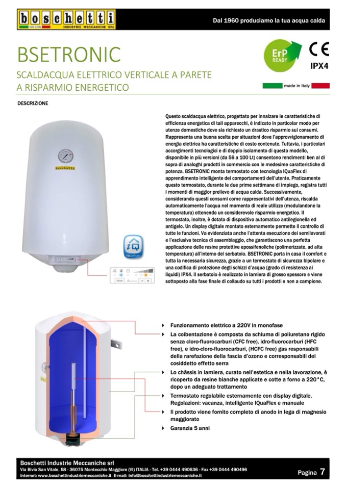 potenza. BSETRONIC monta termostato con tecnologia IQuaFlex di