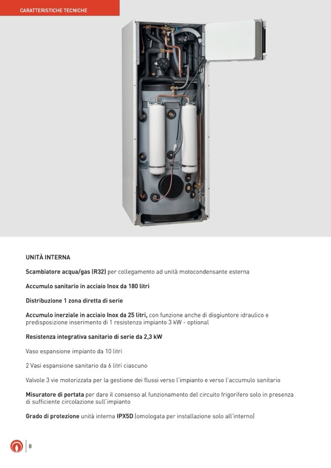 Grado di protezione unità interna IPX5D (omologata per installazione solo all’interno)