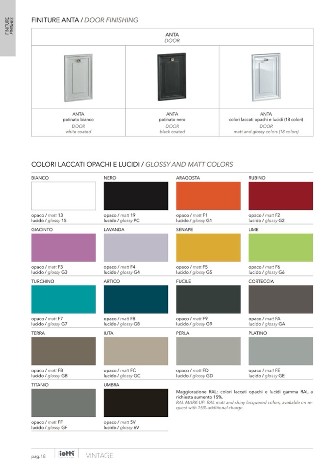 RAL MARK-UP: RAL matt and shiny lacquered colors, available on re-