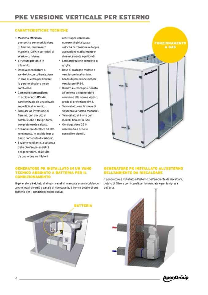 Il generatore è installato all’esterno dell’ambiente da riscaldare,