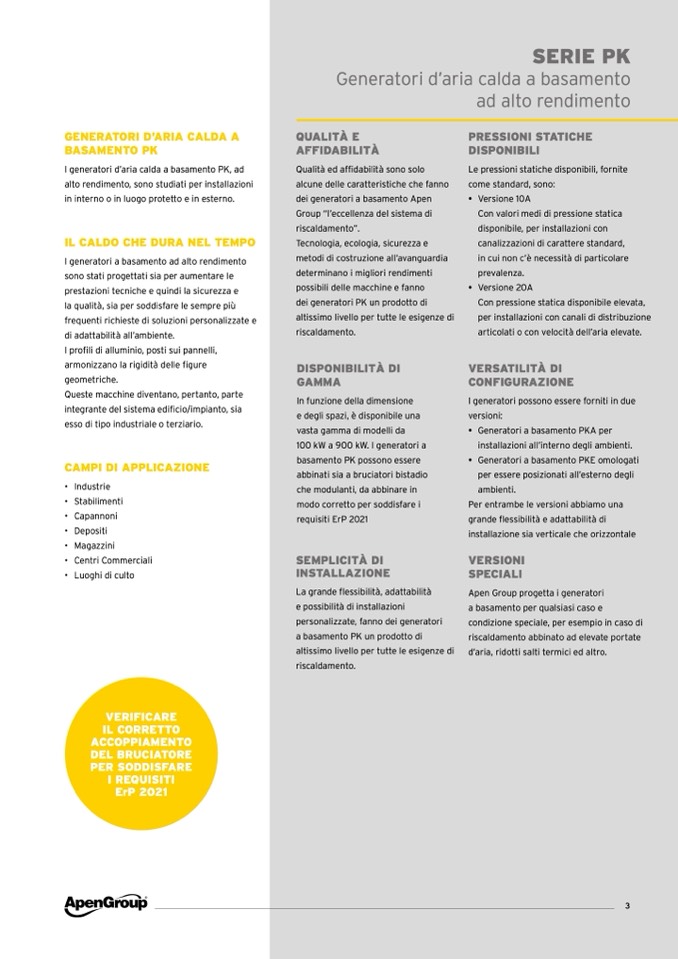 I generatori d’aria calda a basamento PK, ad