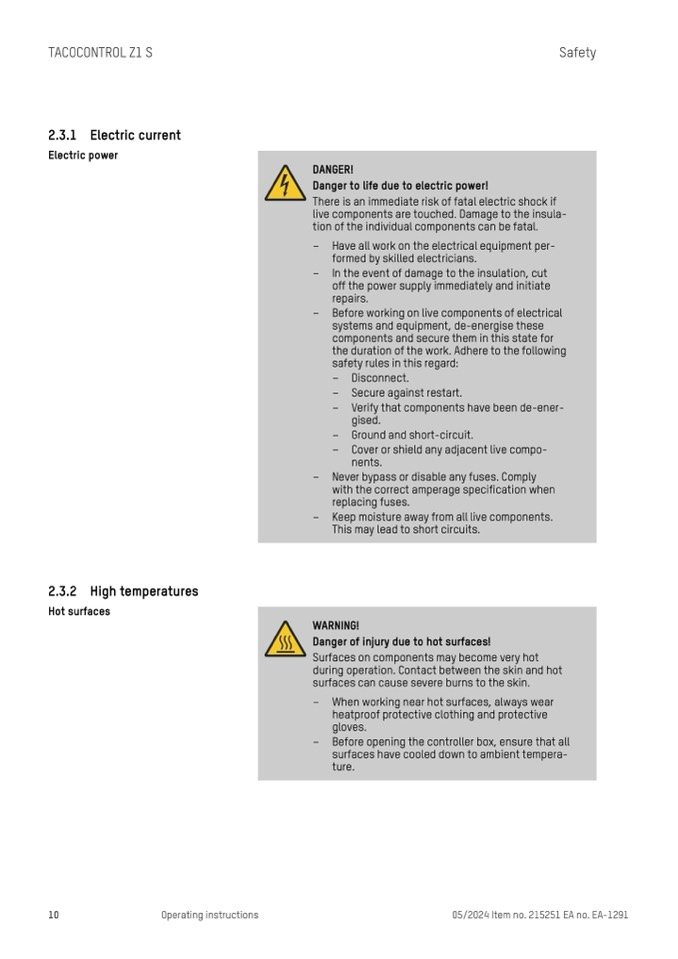 Danger of injury due to hot surfaces!