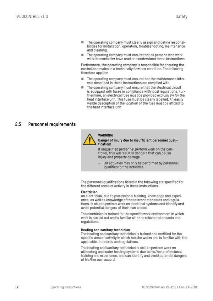 Danger of injury due to insufficient personnel quali-
