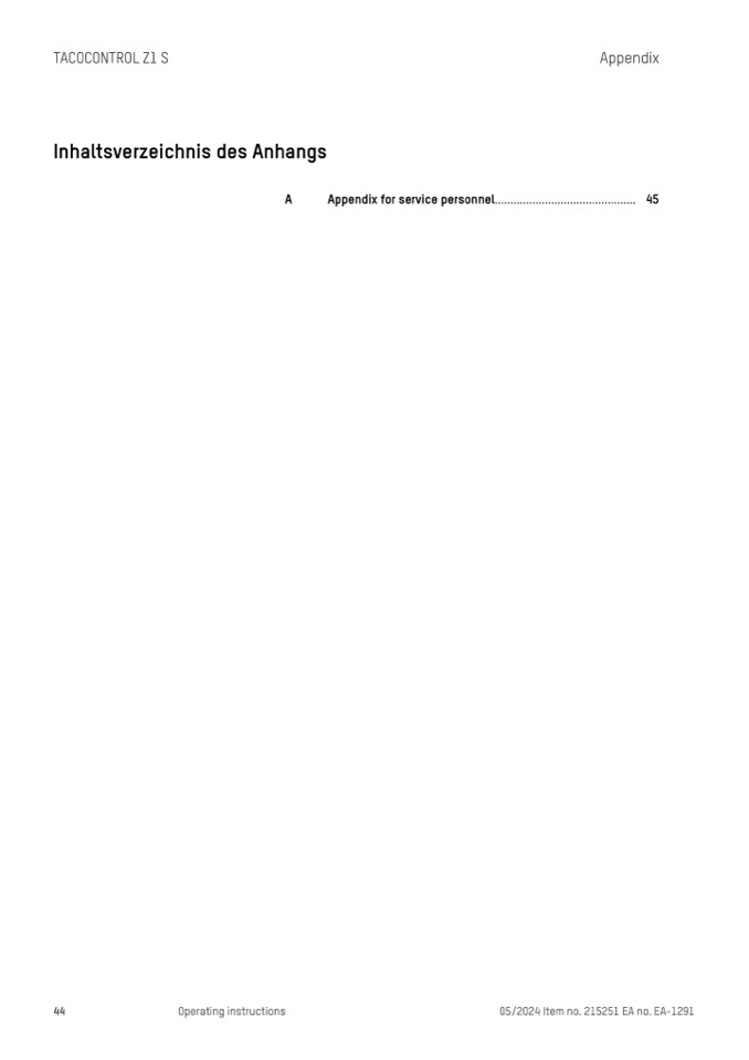 Appendix for service personnel............................................. 45