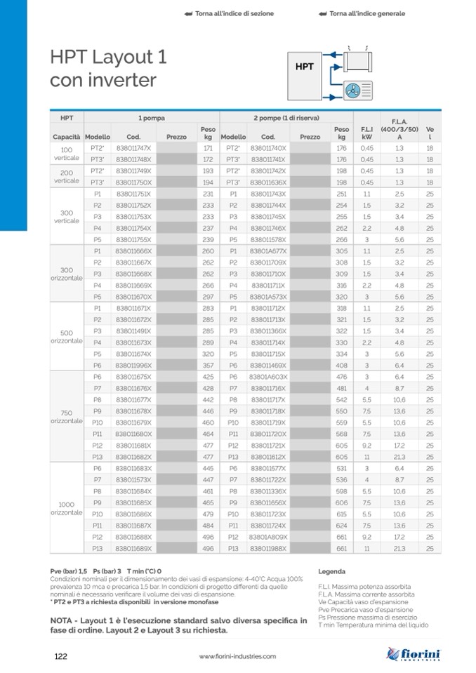 * PT2 e PT3 a richiesta disponibili in versione monofase