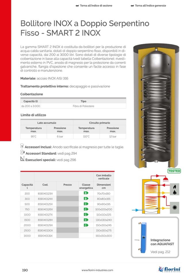 acqua calda sanitaria, dotati di doppio serpentino fisso, disponibili in di-