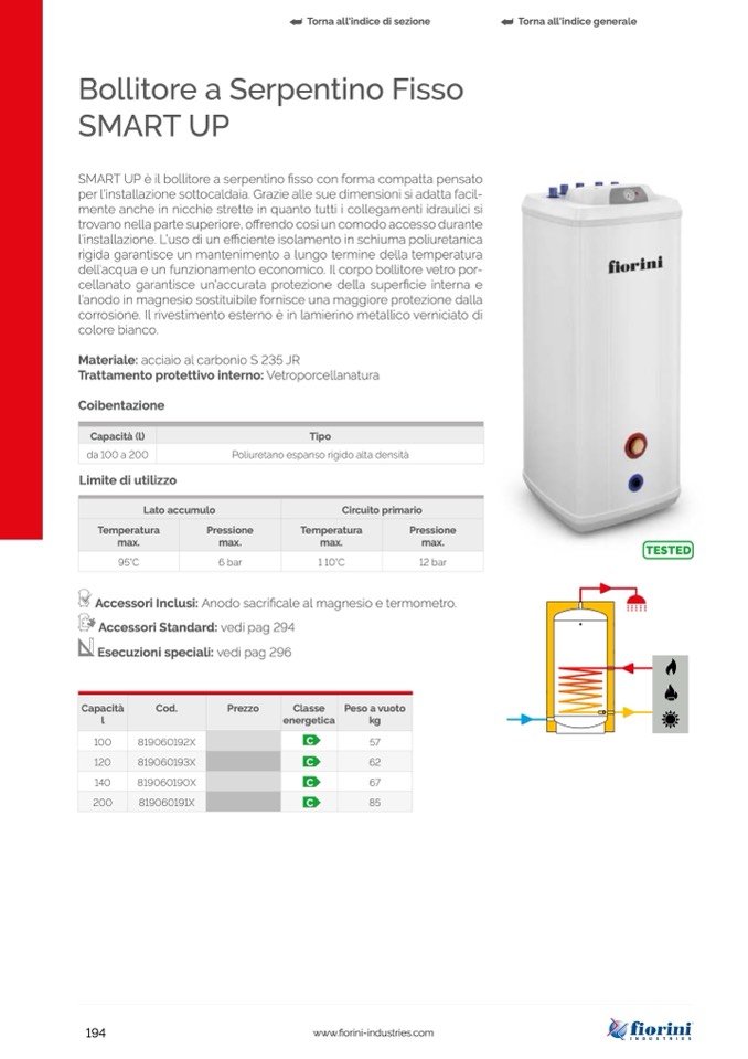 è il bollitore a serpentino fisso con forma compatta pensato
