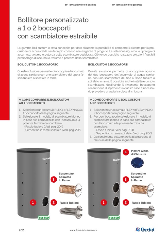 per tipologia di accumulo, volume e potenza dello scambiatore.